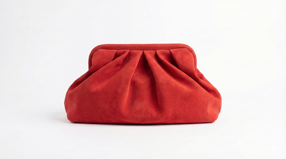 clutch is crafted from velvety faux suede featuring a stunning gathered silhouette that turns a simple outfit into a fashion statement.